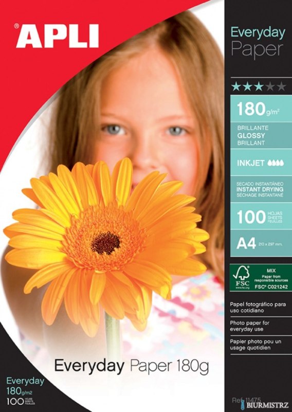 Papier FOTO A4 180g(100AP11475)100ark. do d.atram.EVERYDAY błysk APLI