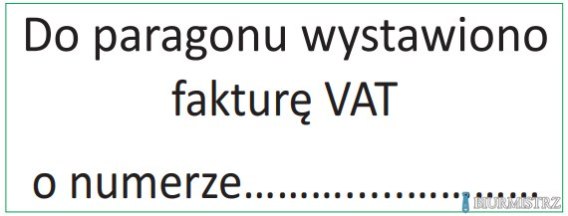 Pieczątka Do paragonu wystawiono fakturę VAT o numerze.... IMPRINT 8912 TRODAT
