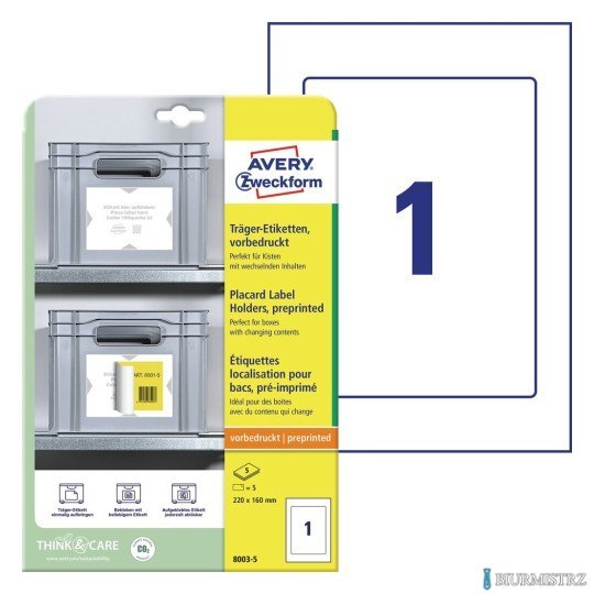 Podkładki pod etykiety, 220 x 160 mm, 5 ark. (już z nadrukiem), Avery Zweckform 8003-5