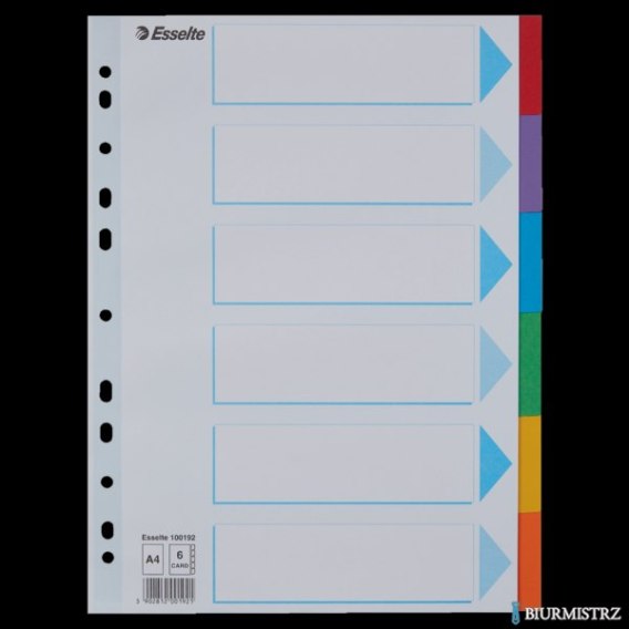 Przekładki karton A4 6 kart ESSELTE 100192 kolorowe z kartą opisową