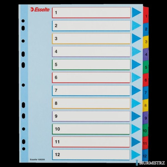 Przekładki Esselte z kartą do wielokrotnego opisu_- przekładki kartonowe MYLAR_- w formacie A4 Maxi (297 x 245 mm)_- idealne do dokumentów przechowywanych w koszulkach_- laminowana z dwóch stron karta informacyjna, można po niej pisać i wielokrotnie korygować napisany tekst, używając do ścierania tekstu plastikowej gumki_- do opisywania zalecane permanentne cienkopisy, markery lub długopisy kulkowe_- laminowane, kolorowe indeksy_- jednostka sprzedaży 1 komplet