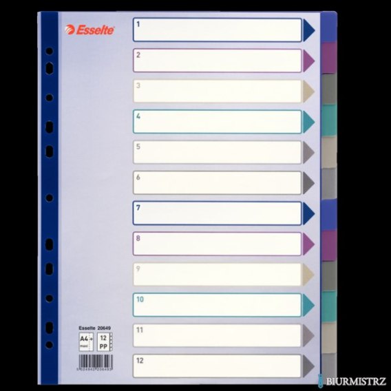 Przekładki plastikowe Multicolor PP, A4 Maxi - 12 kart Esselte, 20649