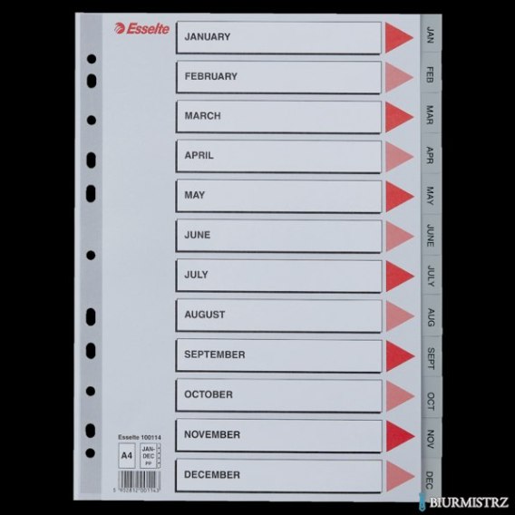 Przekładki plastikowe szare PP A4 12 miesięcy 100114 numeryczne ESSELTE