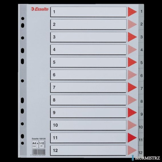 Przekładki plastikowe szare PP alfabetyczne A4 Esselte, 1-12 maxi, , 100125