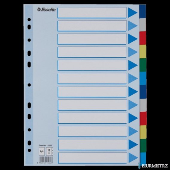 Przekładki plastikowe z PP A4 ESSELTE 12 kart 15262