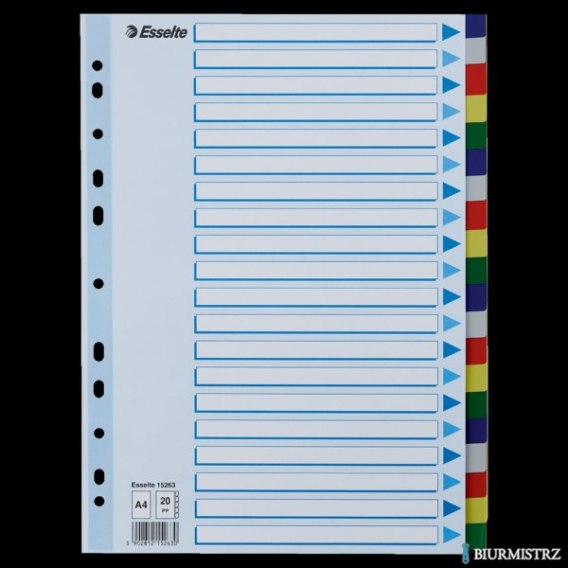 Przekładki plastikowe z PP A4 ESSELTE 20 kart 15263