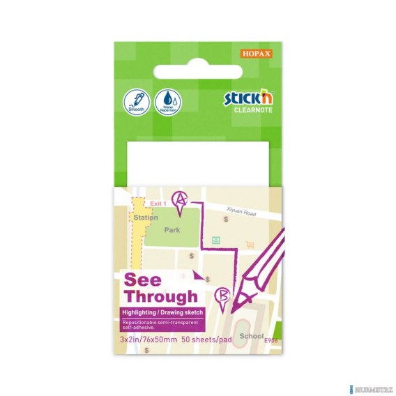 Przezroczysty notes samoprzylepny 51 x 76 mm, 50 karteczek (18) 21708