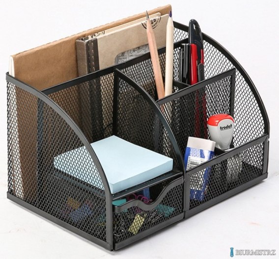 Przybornik na biurko, metal, siatka, czarny KF17295 Q-CONNET