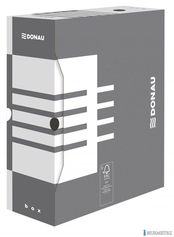 Wykonane z trójwarstwowej tektury falistej o gramaturze 390gsm_produkt bezkwasowy (pH ok. 7,5)_typ fali: B_pojemność: do 1200 kartek o gramaturze 80gsm_posiada 5 otworów ułatwiających wkładanie/wyjmowanie oraz 5 ścian opisowych_specjalny design umożliwia stawianie na krótszym lub dłuższym boku_certyfikat FSC_ gwarantuje, że surowiec potrzebny do produkcji wyrobu pochodzi z lasów zarządzanych w odpowiedzialny sposób; promuje on trwałą gospodarkę leśną opartą o najwyższe światowe standardy w dziedzinie ochrony przyrody i gwarantuje legalność pochodzenia surowca_format: A4_wymiary: 120x340x297mm_kolor szary