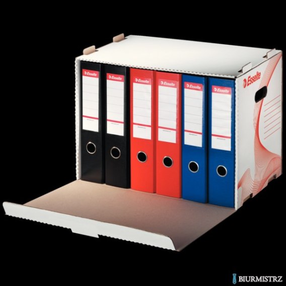 Pudło archiwizacyjne na segregatory Esselte_- do transportu i przechowywania dokumentów w segregatorach_- mieści 6 segregatorów A4/75 mm lub 10 segregatorów A4/50 mm_- miejsca do opisu zawartości na bocznych ściankach_- jednostka sprzedaży 1 sztuka