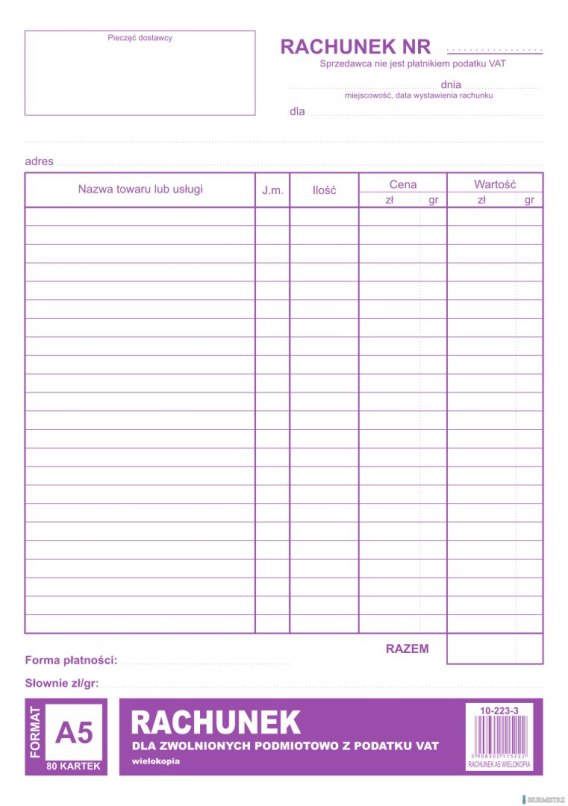Rachunek dla zwolnionych podmiotowo z VAT A5, 80 kartek wielokopia, 10-223-3 DOTTS
