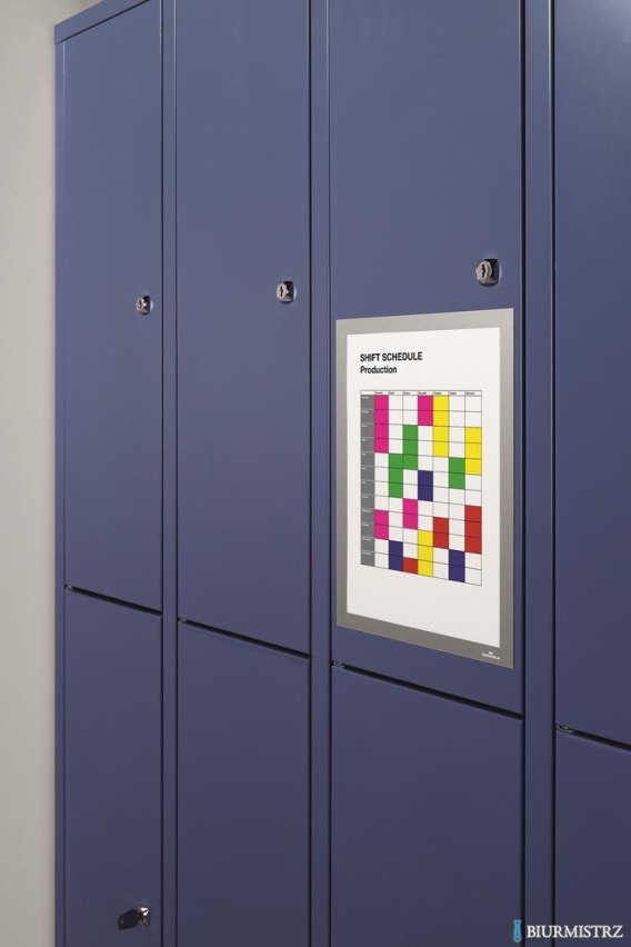 _kolorowa ramka informacyjna z magnetycznymi paskami_mocującymi na informacje w rozmiarze A4__do zastosowania w pionie i poziomie__prosta i szybka wymiana dokumentów przez odchylenie koszulki__transparentna, twarda folia chroni dokumenty__magnes może być przymocowany do metalowych powierzchni__jednostka sprzedaży 1 opakowanie (5 sztuk)