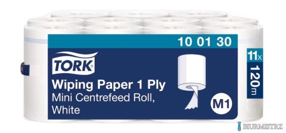 Ręcznik w roli Tork centalnego dozowania mini, 1 warstwa, kolor biały, celuloza z makulaturą, długość 120 m, 11 rolek/op, system M1