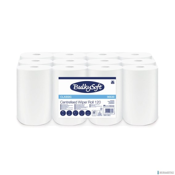 Papierowy ręcznik Bulkysoft w roli centralnego dozowania. Ma 120 metrów długości, perforowany. Ręcznik po wyjęciu gilzy można stosować w systemie centralnego dozowania. Posiada perforację i idealnie sprawdza się w systemie One to One. Dzięki temu systemowi ręczniki w roli Bulkysoft jest wydajny i ekonomiczny. Dodatkowo jest niezwykle chłonny. Jedna, mocna warstwa wysokiej jakości papieru z czystej, selekcjonowanej celulozy wpływa na jego poziom absorbcji wilgoci.