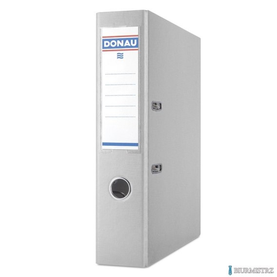 Popularny segregator wykonany z tektury o grubości 2,1mm i gramaturze 1290gsm_posiada Zielony Punkt (Der Gr_ne Punkt) - udział w systemie recyklingu i odzysku odpadów wynikający z przepisów prawa polskiego i UE_pokryty ekologiczną folią polipropylenową (100_m) o strukturze płótna_wewnątrz biała wyklejka papierowa_dźwignia wysokiej jakości z dociskaczem_wymienna, obustronna etykieta grzbietowa_wzmocniony otwór na palec_pod mechanizmem dźwigniowym umieszczony jest numer kontrolny_szerokość grzbietu: 75mm_wymiary: 75x320x285mm_2 lata gwarancji na mechanizm_kolor szary