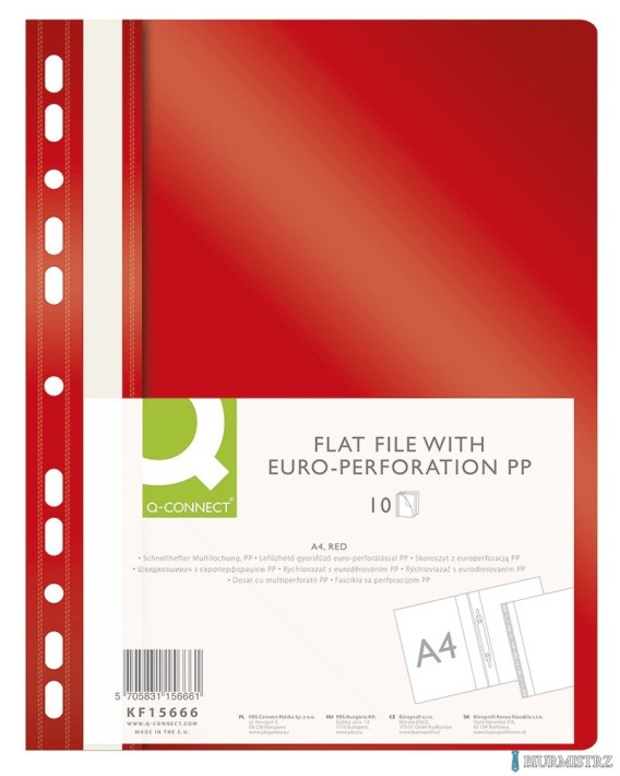 Skoroszyt Q-CONNECT, PP, A4, standard, 120/170mikr., wpinany, czerwony KF15666