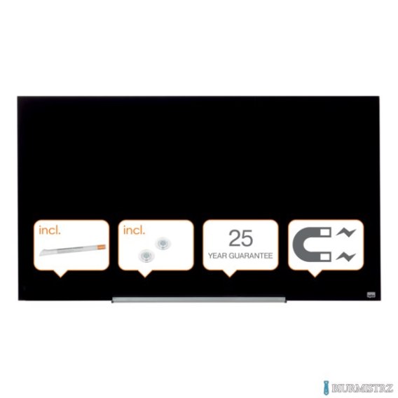 Elegancka i łatwiejsza do wyczyszczenia_z powierzchnią magnetyczną ze szkła hartowanego_odpowiednie do częstego użytku dzięki doskonałej ścieralności i wysokiej odporności na plamy z tuszu, markera oraz zadrapania i wgniecenia_posiadają niewidoczne elementy montażowe_zdejmowana półka na markery_rozmiar: 126,4x71,1 cm_kolor: czarny_gwarancja dożywotnia