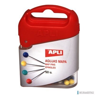 Szpilki kolorowe 50szt.APLI 12348 pudełko plastik