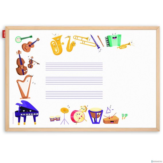 Tablica edukacyjna MemoBe, WHITEBOARDGAME: Music adventure!, nadruk WESOŁE INSTRUMENTY, rama drewniana, 90x60 cm MTM090060.MU02.