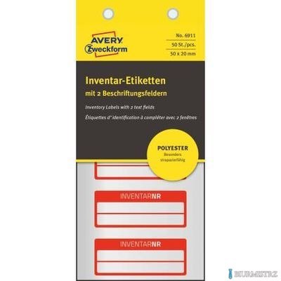 Tabliczki inwentaryzacyjne poliestrowe srebrne do opisu ręcznego, 50 szt., 50x20mm, czerwone, 2 pola na tekst, AVERY ZWECKFORM,