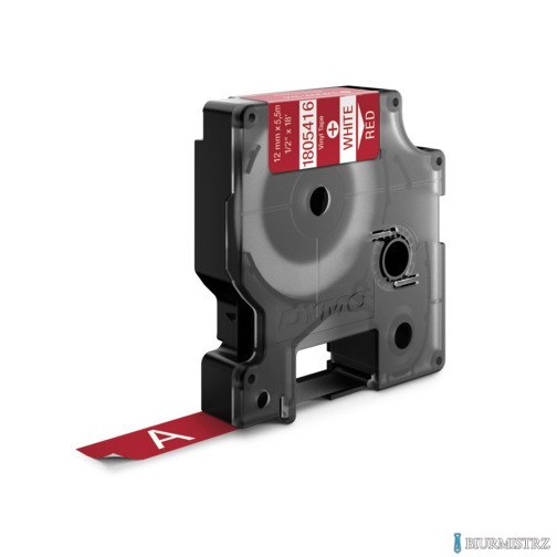 Taśma winylowa RHINO 12 mm biała na czerwonym 1805416 DYMO