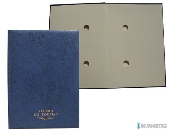 Teczka do podpisu Warta_- okładka twarda, oklejana_- grzbiet kryty_- blok z kartonu barwionego zawiera 10 kart z 2 otworami_- polecamy wykonanie teczek z logo firmy w innej kolorystyce i liczbie kartek_- jednostka sprzedaży 1 sztuka