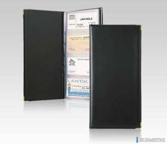 Wizytowniki zawierają 12 wysokoprzezroczystych koszulek trwale przymocowanych do grzbietu okładki, pozwalających na włożenie 96 szt. wizytówek. Produkowane w kolorze czarnym.