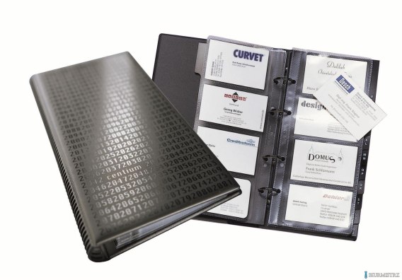 Album na wizytówki z mechanizmem ringowym z atrakcyjnym wzorem. 25 przezroczystych kieszonek z polipropylenu na 200 wizytówek o wymiarach 57 x 90 mm. 12- częściowe wkładki z nadrukowanymi literkami A-Z. Poczwórny mechanizm ringowy. Możliwość rozszerzenia o 80 kart art. nr 2387. Rozmiar: 255 mm szerokość x 145 mm wysokość.