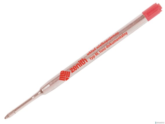 Wkład Zenith - 4 (20)_Metalowy wkład wielkopojemny, dostępny w trzech kolorach tuszu: niebieskim, czarnym, czerwonym. Jest to tusz dokumentalny, odporny na działanie światła i wody. Średnica kulki wkładu wynosi: 0,8 mm, szerokość linii pisania: 0,5 _ 0,7 mm, długość linii pisania: 3_500 m. Końcówka wkładu wykonana jest z mosiądzu wysokoniklowego, tzw. nowe srebro, i wyposażona w kulkę z węglika wolframu TC, co podnosi żywotność końcówki, dając równomierność parametrów pisania w trakcie całego okresu eksploatacji. Jednostka sprzedazy 1 opakowanie