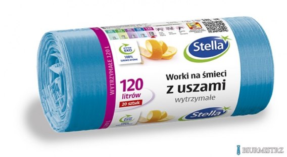 STELLA Worki na śmieci z USZAMI WYTRZYMAŁE 120L 20szt. NIEBIESKIE (HD-LD)