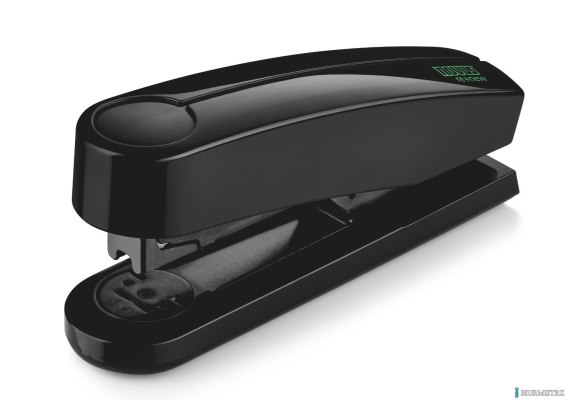 Zszywacz Novus B4 RE+NEW doskonałym wyborem do domu lub biura. Wykonany z metalu w obudowie z tworzywa sztucznego, którego 81% pochodzi z recyklingu. Umożliwia zszycie permanentne, czasowe i tapicerskie dzięki obrotowej matrycy. System ładowania zszywek od przodu przy użyciu przycisku. Magazynek na cztery rodzaje zszywek: 24/6, 24/8, 26/6, 26/8. Maksymalna głębokość wsuwania kartki 65 mm. Kolor czarny. Dołączone 200 zszywek 24/6 SUPER.