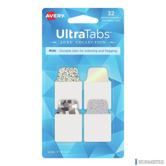 • Samoprzylepne zakładki indeksujące Ultra Tabs składają się z przezroczystego korpusu, po którym można pisać oraz ze srebrnych, holograficznych zakładek.