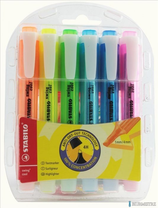 Zakreślacz STABILO swing cool, fluorescencyjny, zestaw 6 szt. w etui