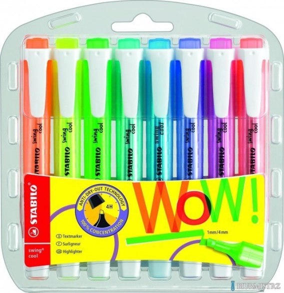 Zakreślacz STABILO swing cool fluorescencyjny, zestaw 8 szt. w etui