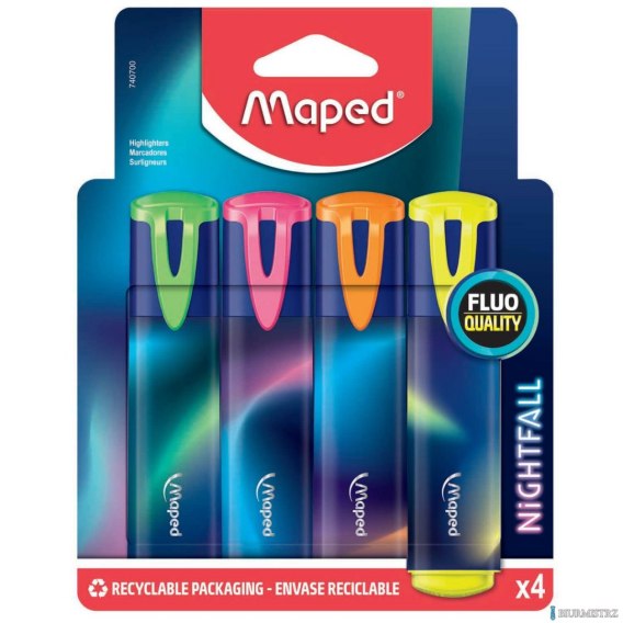 Zakreślacze Nightfall 4 kolory, ścięta końcówka 1-5 mm 740700 Maped