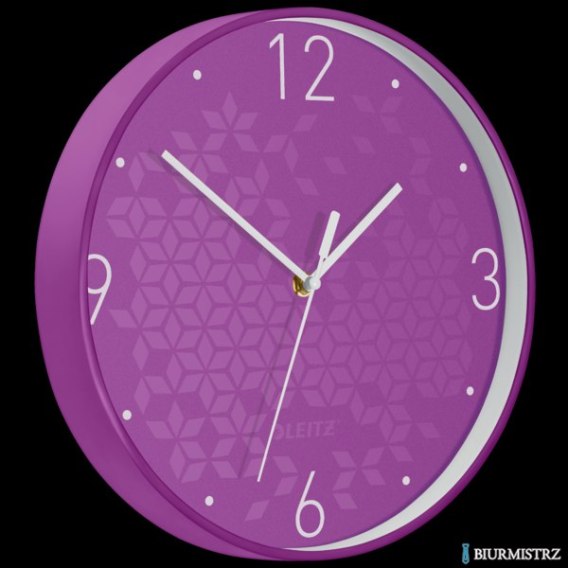 Element kolekcji Leitz WOW oferującej szeroki wybór stylowych produktów biurowych dostępnych w przykuwających wzrok kolorach i wyrafinowanym wzornictwie, które pozwoli Ci wyrazić swoją osobowość. Zaprojektowane z myślą o osobach pracujących w biurach lub często przemieszczających się_Średnica tarczy 29 cm_Cichy, kwarcowy mechanizm_Konstrukcja z solidnej, plastikowej, dwukolorowej ramy ze szklanym frontem_Tarcza z geometrycznym wzorem w kolorach WOW i dużymi cyframi_Trzy czarne wskazówki zegara są dobrze widoczne na tle tarczy_Z wygodnym otworem do zawieszania_Działa na 1 baterię AA (niedołączana do zestawu)