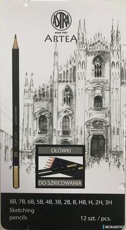 Zestaw ołówków do szkicowania Astra Artea mix 12 sztuk metalowym pudełku, 206120013