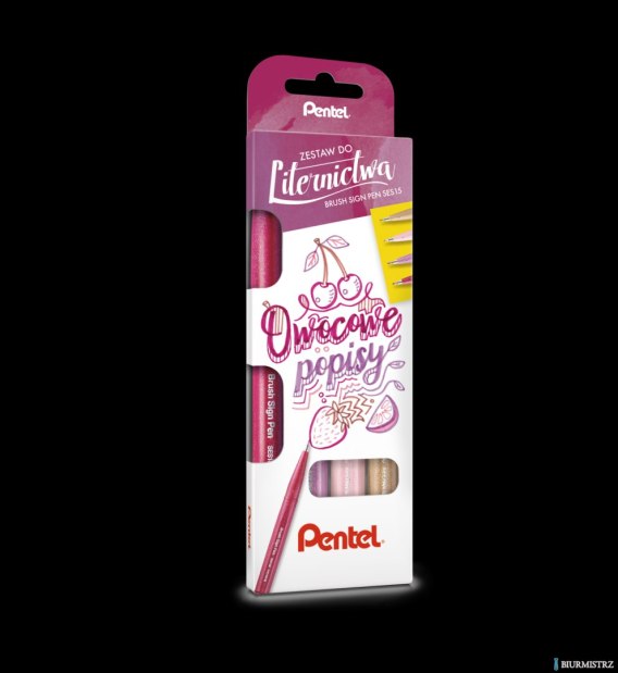 Zestaw pisaków pędzelkowych do kaligrafii i liternictwa OWOCOWE POPISY SES15C-ST4BEPPPL PENTEL