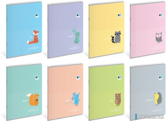 Seria zeszytów w pastelowych kolorach okładek.