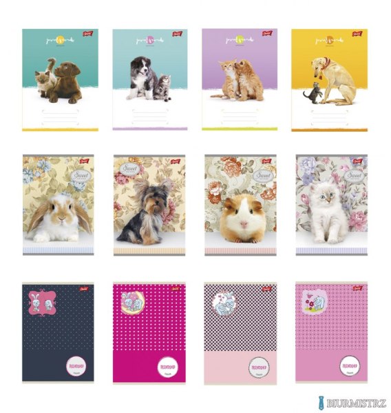 Zeszyt szkolny 3-linia jednokolorowa mix dziewczęcy laminowany A5 16 kartek, UNIPAP *6915