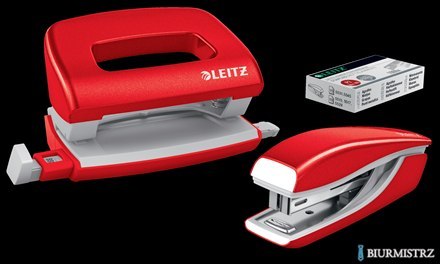 Zszywacz + dziurkacz metalowy Leitz Mini WOW, czerwony, 10 lat gwarancji, 10 kartek 55612026